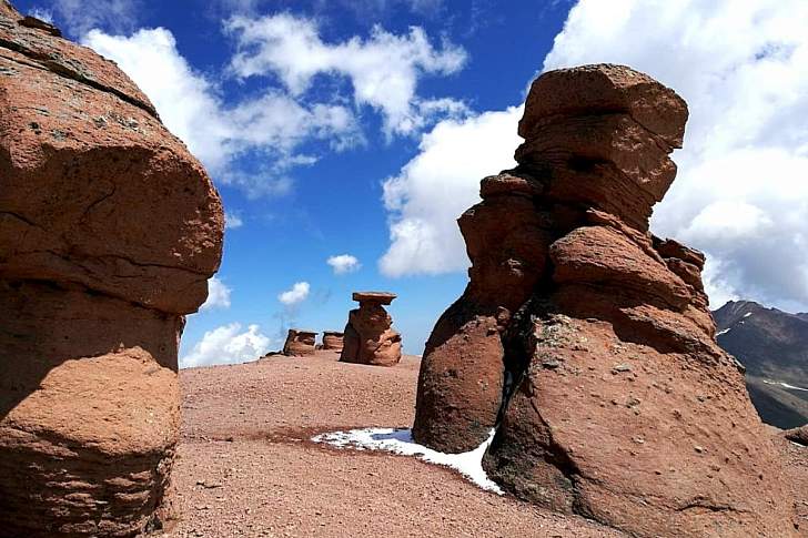 Еще одна достопримечательность – ледник «Семерка». Он расположился между вершинами Донгуз-Орун и Накра и получил свое название из-за формы, напоминающей цифру 7. Рядом находится озеро Донгуз-Орун-Кель — оно питается от ледников и имеет необычный зеленовато-рыжий цвет воды. Дойти до него можно пешком от верхней станции первой канатки, преодолев около 30 минут пути через цветущие альпийские луга и горные ручьи.