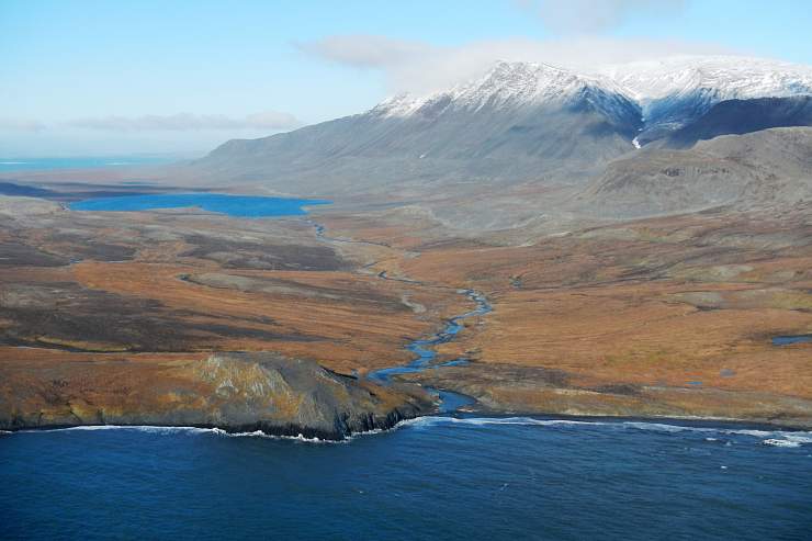 ▸ остров Северный входит в арктическую зону с мощными ледниковыми и морскими ландшафтами;