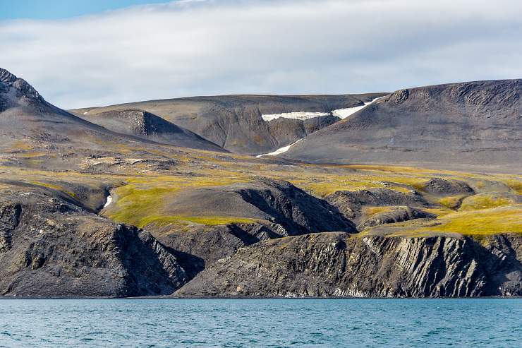 Арктическая природа действует здесь не за счет яркости красок, а за счет силы формы, масштаба и атмосферы. Северный остров запоминается резкими берегами, холодным морем, снежными участками даже летом, колониями птиц, морскими животными и особым светом, который делает пейзаж почти неземным.