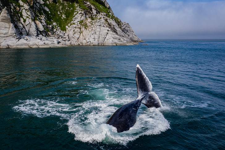 Это место сложное с точки зрения погодных условий. До июля тут стоит лёд. Но зато можно увидеть больших и удивительных гренландских китов. Они есть и на Чукотке, но на Шантарах их можно разглядеть лучше всего. Эти морские гиганты – самые северные киты в мире, их еще называют полярными. Несмотря на это, они достаточно активны и не боятся лодок, поэтому то, что вы увидите их во время путешествия, – огромная вероятность.