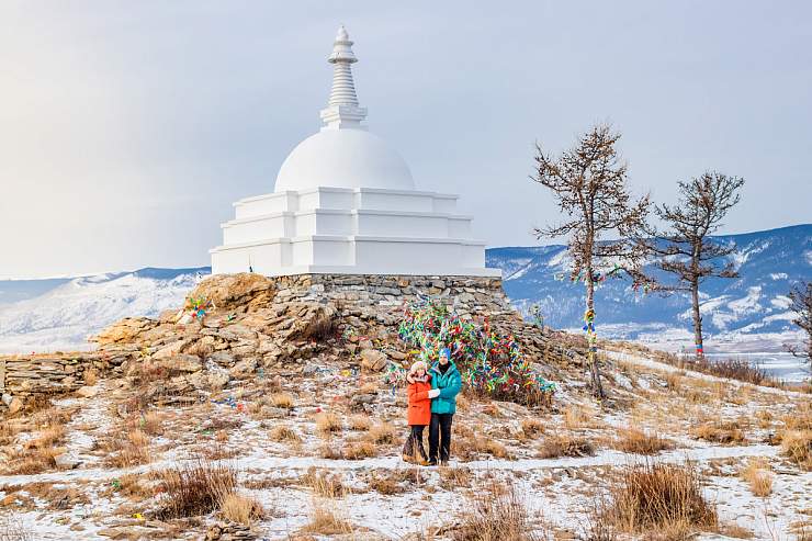 Остров Огой – его силуэт с буддийской Ступой Просветления на вершине стал одним из символов Байкала. Подъем к ступе по заснеженной тропе – это духовный акт, очищающий и наполняющий смыслом. А мыс Дракона на южной оконечности острова в обрамлении льда выглядит особенно могущественно.