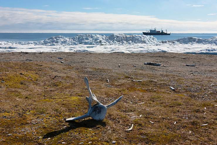 А в прибрежных водах можно увидеть серых и гренландских китов, которые приплывают кормиться в богатые планктоном воды. Наблюдение за китами с резиновых лодок «Зодиак» – одно из самых ярких впечатлений экспедиции.