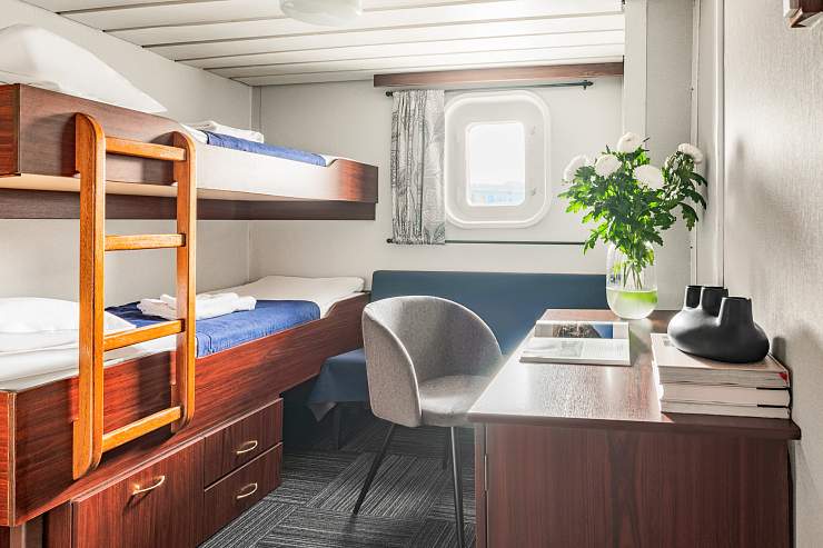 ▸ На борту экспедиционного судна – самый распространенный вариант. Туристы живут в каютах, питаются в ресторане, слушают лекции ученых. Корабль становится плавучей базой, от которой каждый день отходят «Зодиаки» для высадок на берег.