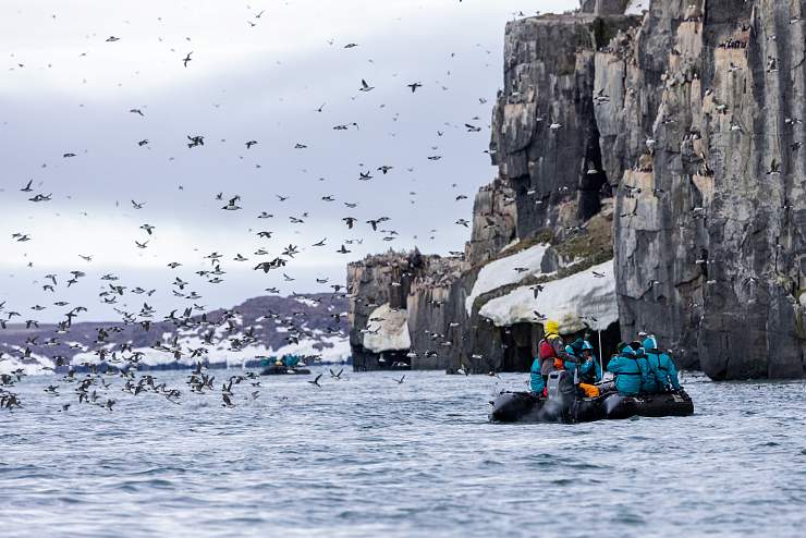 Экстремальных нагрузок не будет, но прогулки по тундре могут длиться 2–3 часа. Высадки с «Зодиаков» требуют ловкости и координации. Будьте готовы к тому, что придется перешагивать через камни, спрыгивать в воду при прибое.