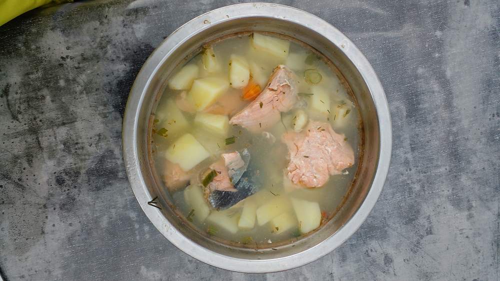 15:00 Обед на берегу Охотского моря возле Черных камней (уха по-итурупски, чай с курильским шиповником и травами, рыбные пресервы, овощная нарезка). (*Если обед будет невозможно организовать на природе по погодным условиям, обед будет предоставлен в кафе)