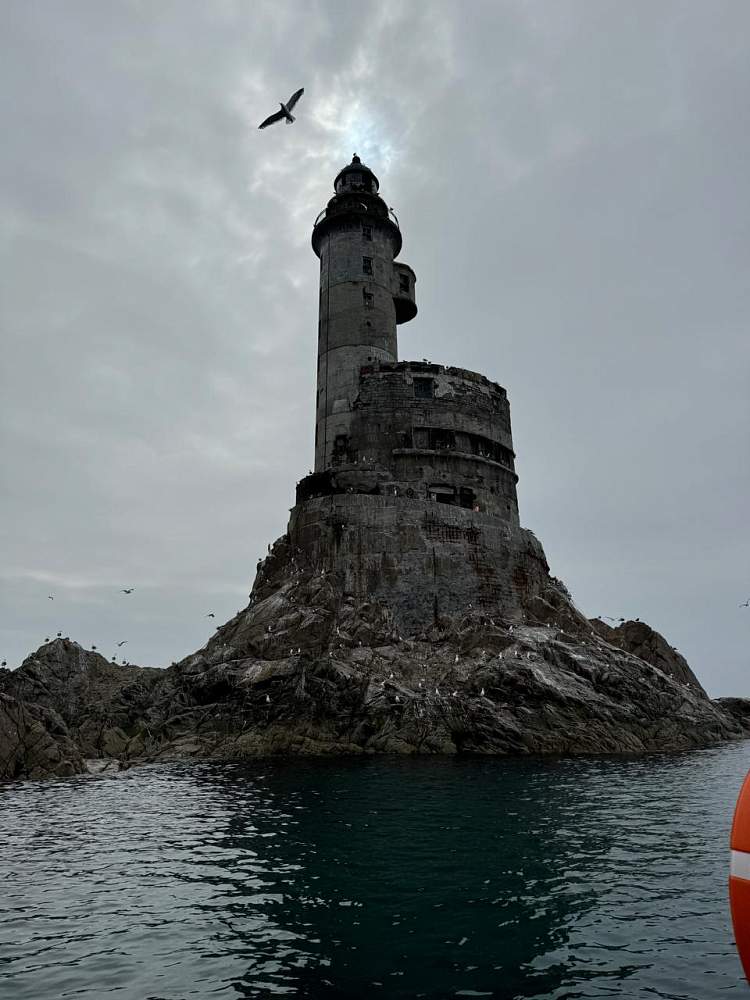 11:00 Прибытие к маяку Анива. Маяк Анива на данном маршруте осматривается с моря, по пути следования на лодках, не забудьте взять плащ, шапку, хлопчатобумажные перчатки.