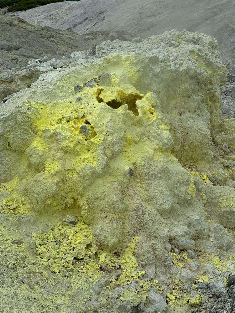 ВНИМАНИЕ! В районе фумарольного поля необходимо соблюдать меры предосторожности, обязательно следовать указаниям сопровождающего – можно провалиться в фумаролы, получить химические ожоги.