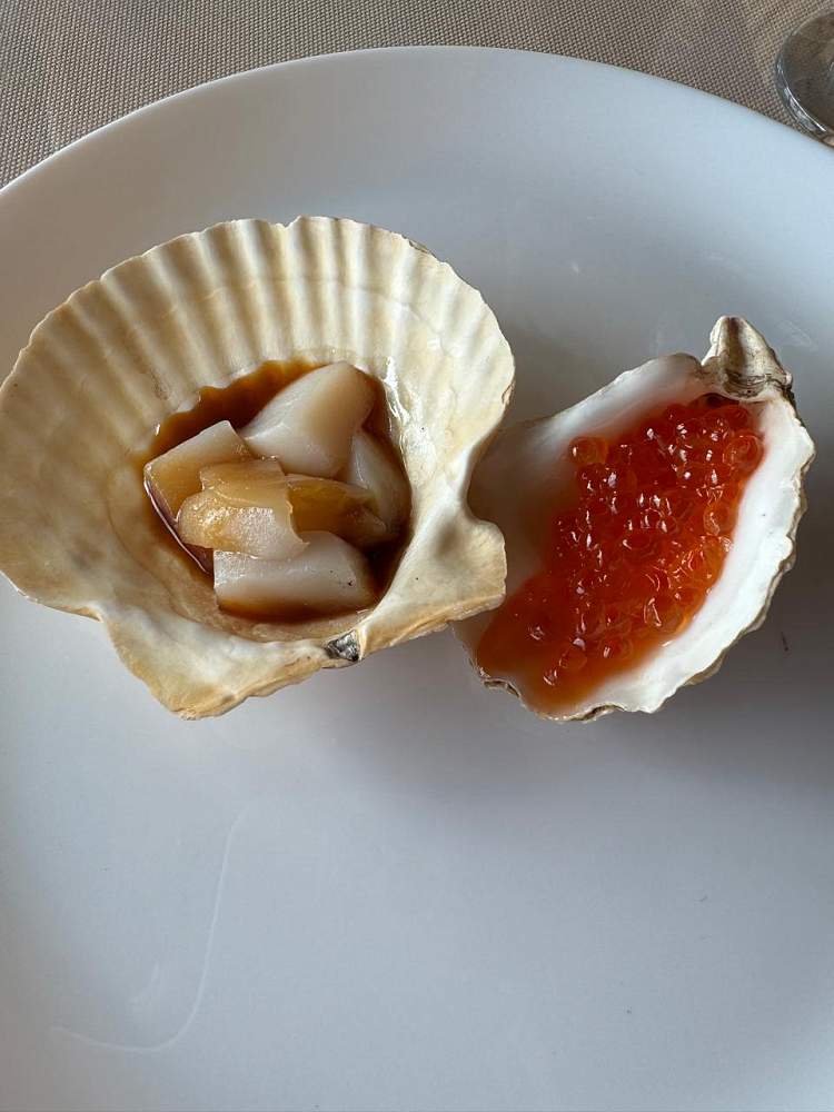 В меню: ½ бокала вина, свежий гребешок, красная икра, нарезка из рыбы, дикие устрицы с лимоном и фирменным устричным соусом; запеченные устрицы под сыром с чесночком; блюдо «Сахалинское детство» (сезонная рыба, запеченная в листьях лопуха); уха по-сахалински; свежие овощи; морс; чай/кофе.