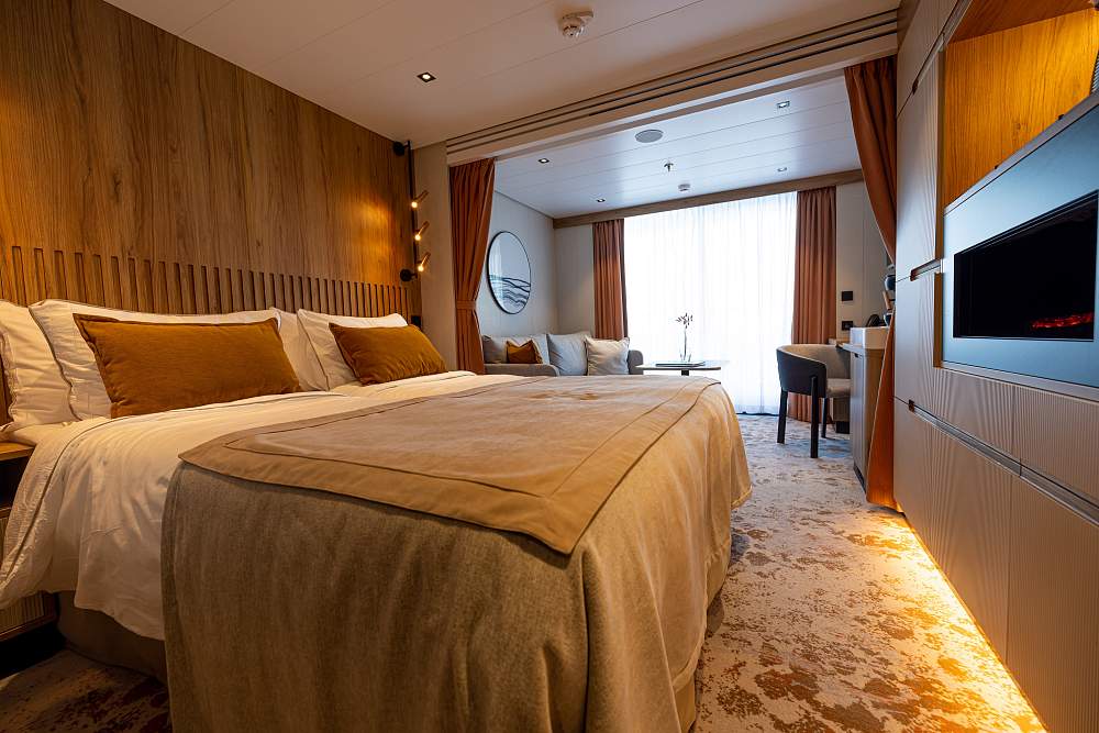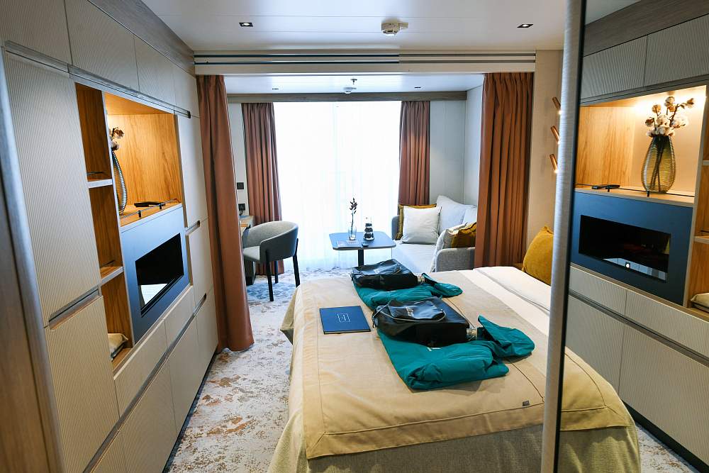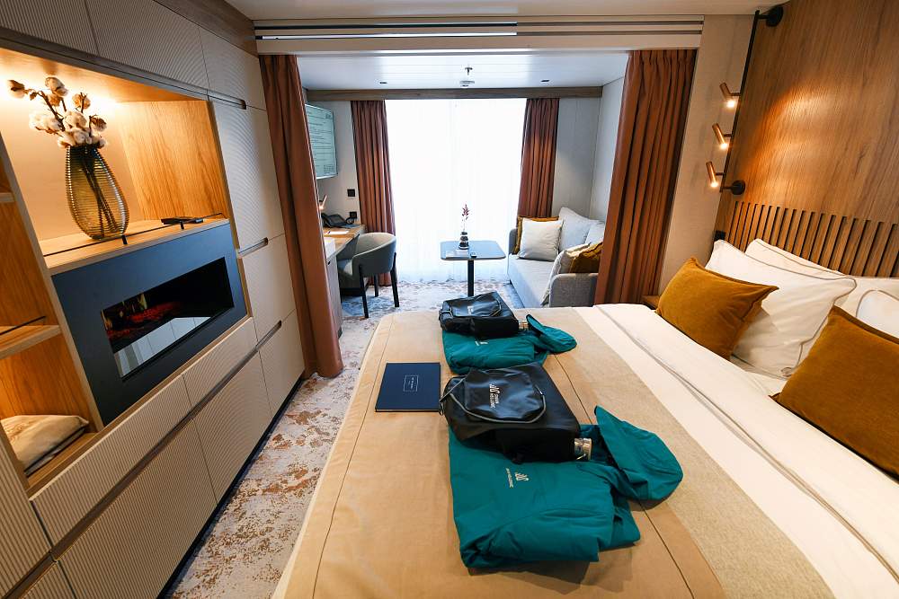 На борту судна к услугам пассажиров открытый бассейн-«инфинити», рестораны высокой кухни, панорамная смотровая площадка и открытая палуба для наблюдений, Спа-зона с современным тренажерным залом, экспедиционная лаборатория, удобное лобби для переодевания и хранения экипировки, уютные и просторные каюты с панорамными балконами и каминами для самых притязательных путешественников.
