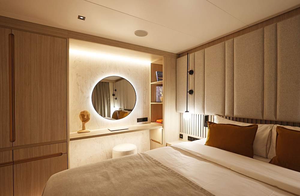Понимая, насколько важны комфортные и просторные общественные зоны на борту, производители судна уделили особое внимание их дизайну, и это не просто удобные и уютные помещения, все они позволяют не терять из виду самое важное – красоту посещаемых мест, которыми вы сможете любоваться через панорамные окна.