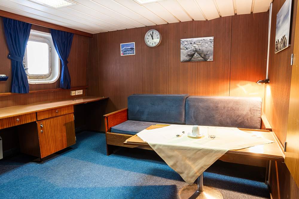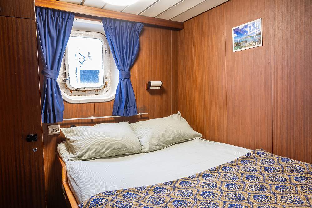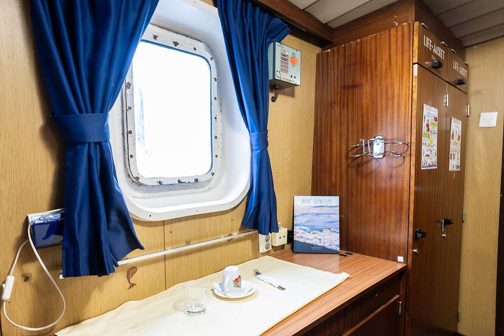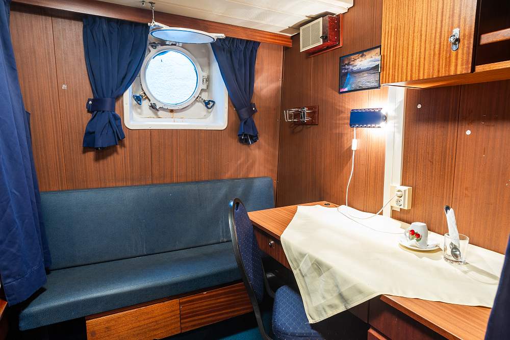 Каюта «Полулюкс» (18–21 м²) (В каюте: отдельная ванная комната (туалет, душ, раковина), двухспальная кровать, раскладной диван, телевизор, холодильник, чайник, письменный стол с креслом, тумбочка, шкаф для одежды, окно) – 1 800 000 рублей с человека