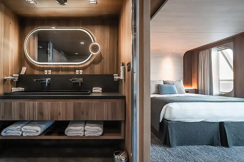 Располагая всего 135 каютами, включая 31 люкс с панорамными балконами, Le Commandant Charcot приглашает вас окунуться в уютную и утонченную атмосферу.