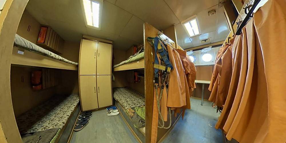 Практиканты размещаются в 12-местных кубриках (для группы выделено 2 кубрика: мужской и женский). Для участников тура предоставляются отдельные от курсантов туалет и душ – для мужчин и женщин. Для душа рекомендуем взять резиновую обувь, как для бассейна, с максимально закрытым носом, не вьетнамки (кроксы).