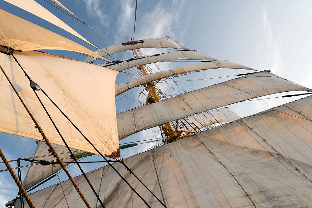 Делимся на группы и поднимаемся на мачты. Боцман внимательно следит за каждым: кто-то найдет себя на реях, работая с парусами, а кто-то предпочтет остаться на палубе. И то, и другое – ценный опыт. Если повезет с погодой, вас ждут первые выходы на реи – вид с высоты открывается невероятный.