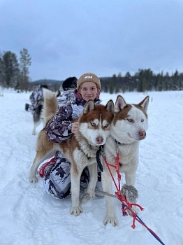 Нас ждут весёлые забавы на морозном воздухе, тёплые встречи с северными оленями, дружелюбными хаски и кроликами, волшебная поездка в нартах, запряженных оленями, и согревающий душевный обед.