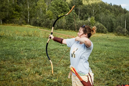Знакомство с башкирской культурой: рассказ о национальных башкирских костюмах, фотосессия в национальных костюмах. Стрельба из лука.