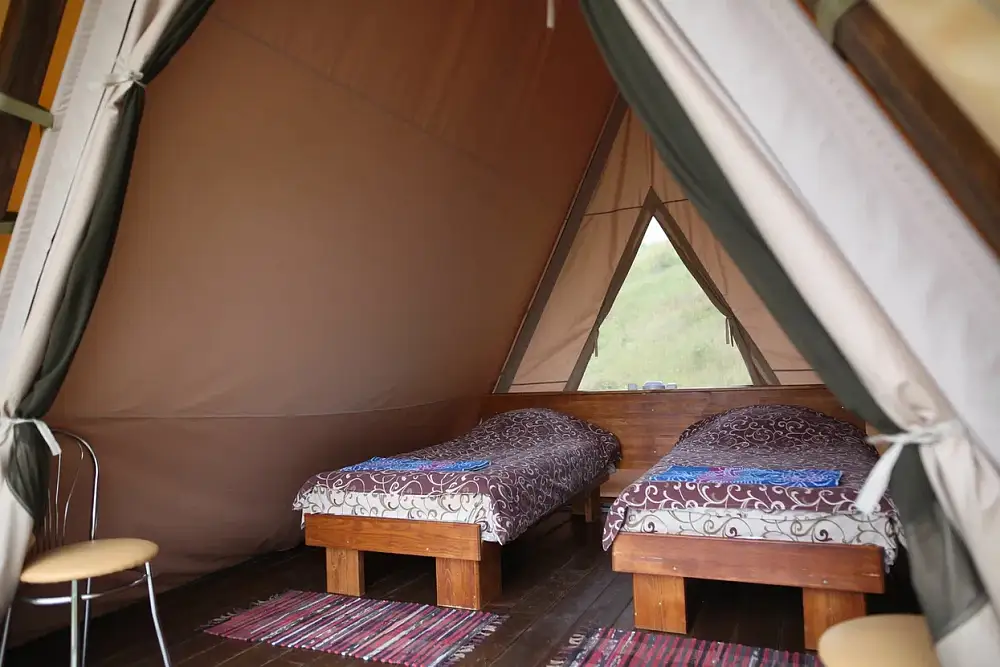 возможность выбора варианта проживания: в палатках или комфортных «сафари-тентах» с удобствами