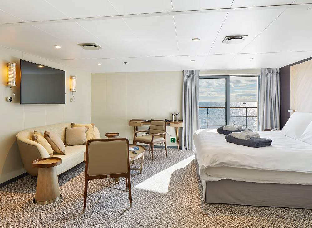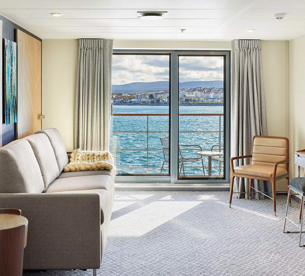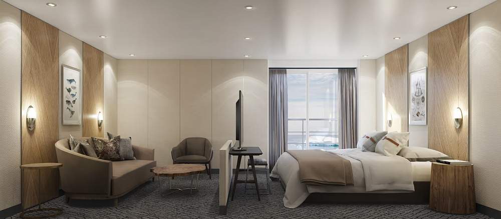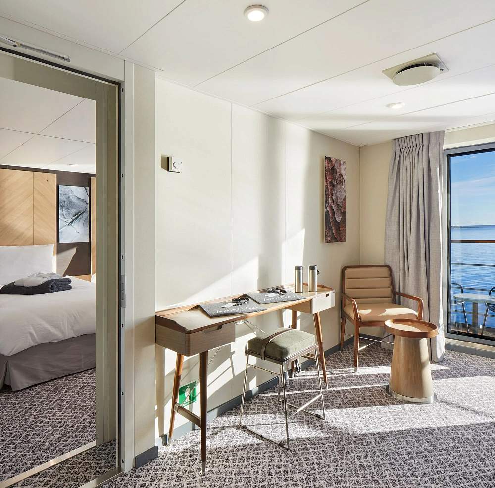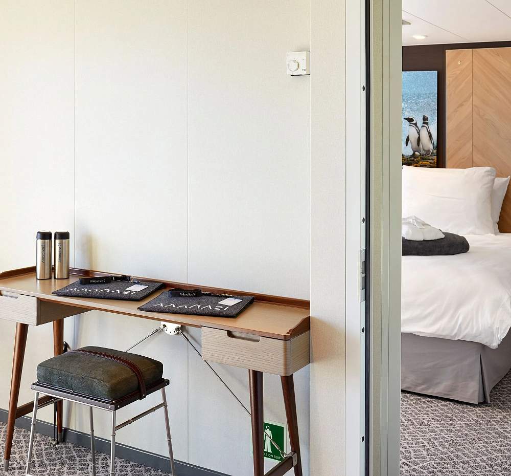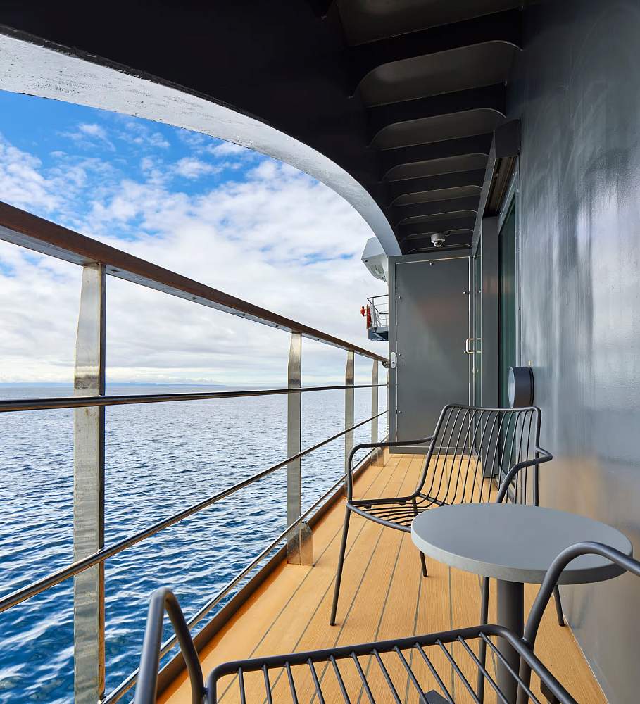 Элегантные внутренние помещения судна были спроектированы знаменитой студией дизайна интерьеров Enrique Concha & Co, расположенной в Сантьяго-де-Чили. Каждая деталь, от цветов до материалов, была тщательно продумана для того, чтобы сделать опыт путешествия на судне незабываемым. Результатом стало современное пространство, сочетающее комфорт, стиль и функциональность.
