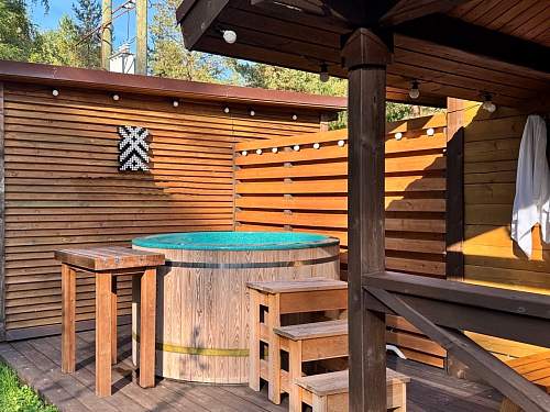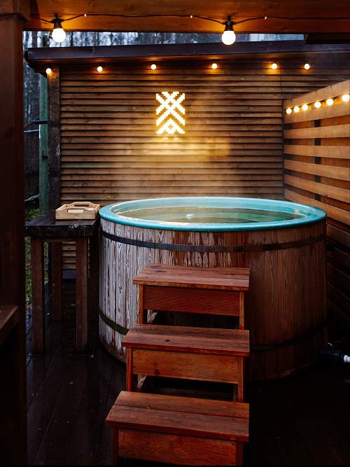 Сегодня нас ждёт жаркая баня и расслабление в тёплом целебном чане под звёздным небом (включено в стоимость). Идеальный отдых для тела и души.