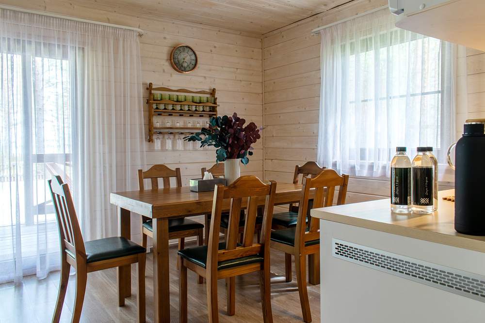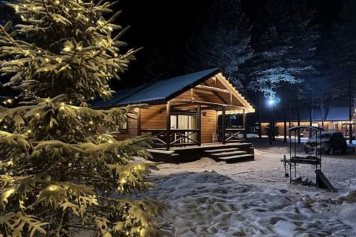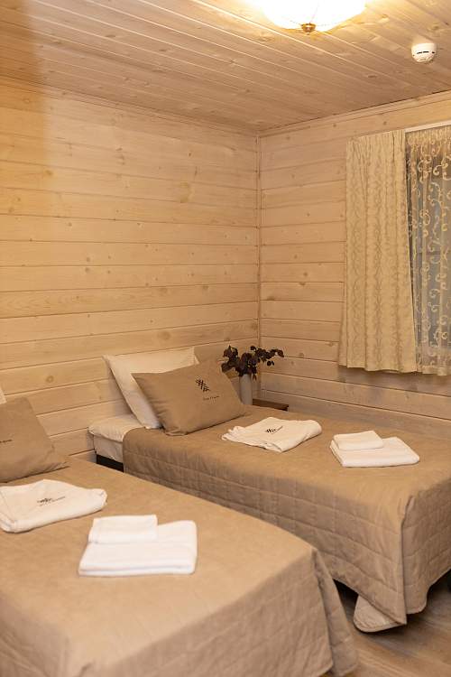 Размещение в тёплых 4/6-местных деревянных коттеджах (двухместное размещение, в каждом коттедже 1 туалет и 1 душевая кабина).